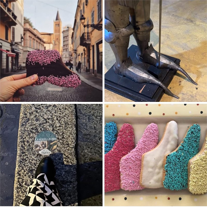 Foto copertina: Scarpetta Rosa da Parma Welcome; Calzature antiche a punta dal Castello di Rivalta; visita a Correggio500 courtesy F. Maffini; scarpette colorate da Visit Emilia.