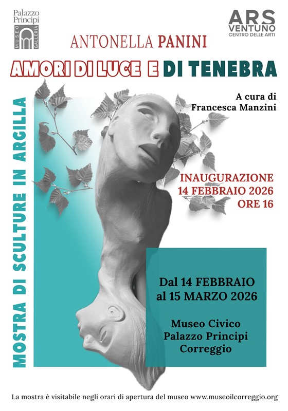 Il 14 febbraio 2026 alle ore 16 inaugura al Museo Civico Il Correggio la mostra di sculture in argilla di Antonella Panini Amori di luce e di tenebra.