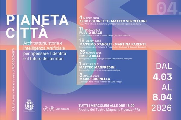 Sono i temi al centro della quarta edizione di Pianeta Città - un ciclo di conferenze in Teatro Magnani a Fidenza la rassegna sulle trasformazioni urbane - moderate e a cura di Aldo Colonetti. Fra gli ospiti Mario Cucinella - filosofo, storico e teorico dell'arte, del design e dell'architettura già direttore scientifico dello IED (Istituto Europeo Design), professore di chiara fama al Politecnico di Milano - in programma dal 4 marzo all'8 aprile ogni mercoledì alle ore 18 a Teatro Magnani con personalità di riconosciuto prestigio. La rassegna prende le mosse dai temi proposti dal Padiglione Italiano del 2018, curato da Mario Cucinella, dedicato ad Arcipelago Italia. Il progetto poneva l’attenzione sui territori interni del Paese, privilegiando quegli insediamenti urbani che costituiscono la struttura - non solo geografica - dell’Italia.