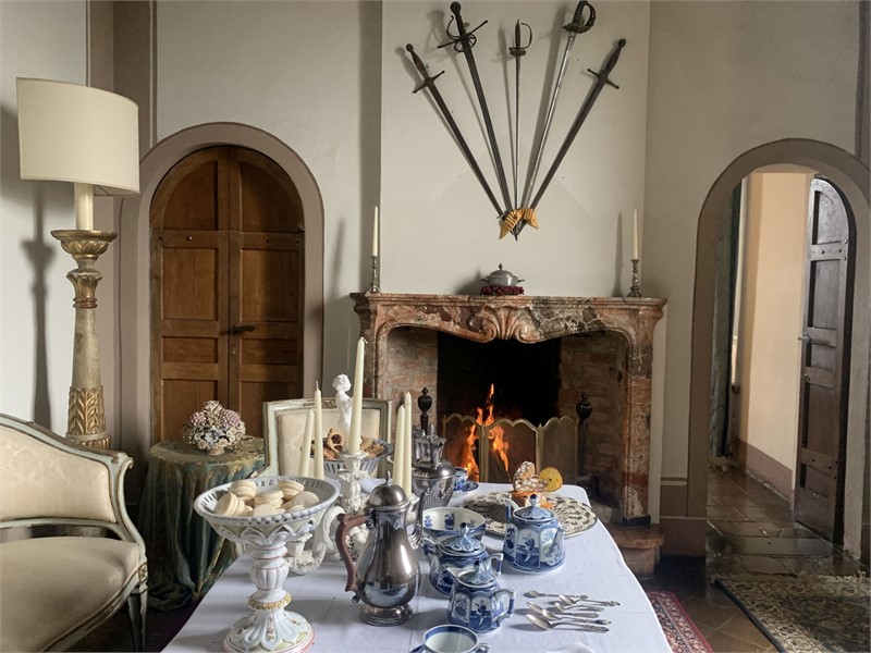 Nel salotto francese del Settecento, una piccola tavole è allestita con preziose porcellane cinesi antiche, e dolci veri della tradizione nobile.