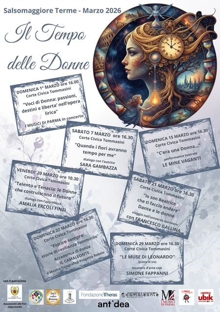 “Desidero ringraziare 365 Volte Donna, Consulta del Volontariato, Fondazione Theras, Amici di Salsomaggiore e la Libreria Ubik che hanno collaborato nell’organizzazione attenta e appassionata di questa rassegna – dichiara l’Assessore Giulia Chiussi –. Il loro impegno costante arricchisce il nostro territorio di occasioni di riflessione autentica e di crescita culturale. “Il Tempo delle Donne” rappresenta un percorso che va oltre il singolo evento: è un invito a riconoscere il valore delle donne nella storia e nella quotidianità, contribuendo a costruire una comunità più consapevole, inclusiva e capace di guardare al futuro con responsabilità”.